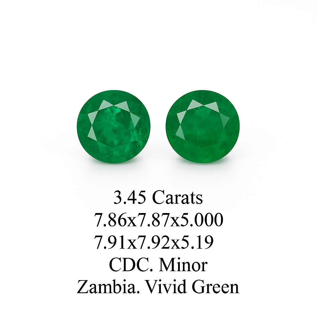 This Round Vivid Green Emerald has a total carat weight of 3.45 ct. with Minor Enhancement. The dimensions are 7.86x7.87x5. The country of origin is Zambia.