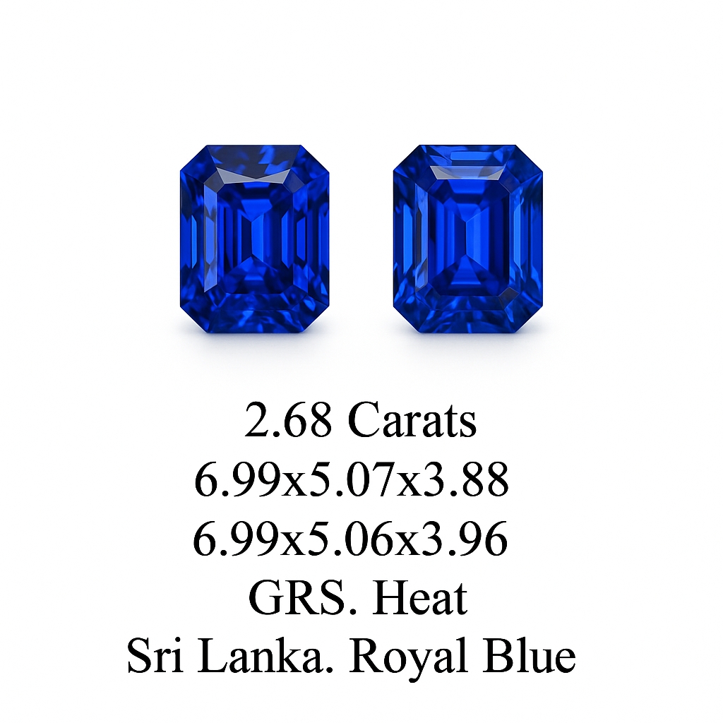 This Emerald Cut Royal Blue Sapphire has a total carat weight of 2.68 ct. with Heated Enhancement. The dimensions are 6.99x5.06x3.96. The country of origin is Sri Lanka.