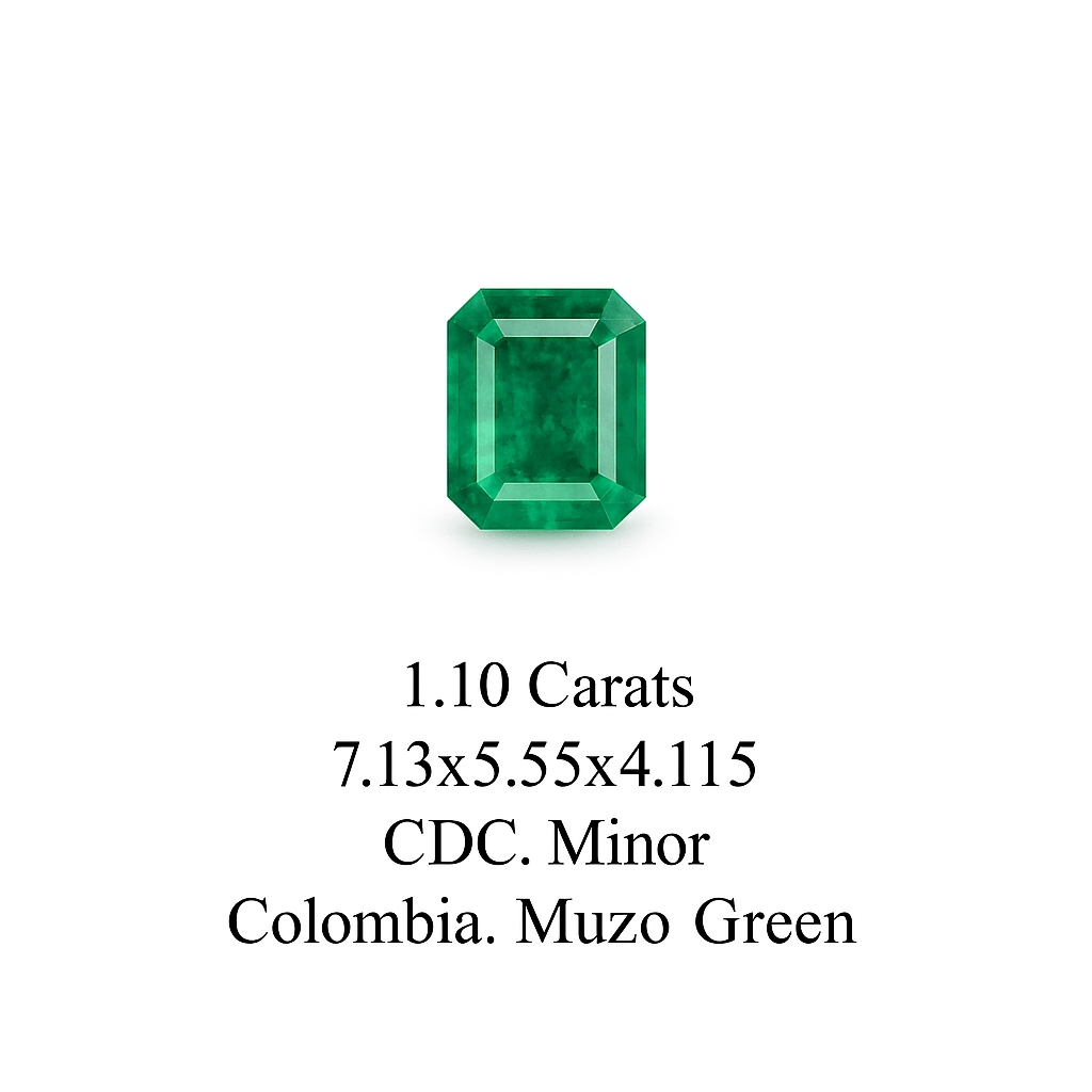 This Emerald Cut MUZO Emerald has a total carat weight of 1.10 ct. with Minor Enhancement. The dimensions are 7.13x5.55x4.15. The country of origin is Colombia.